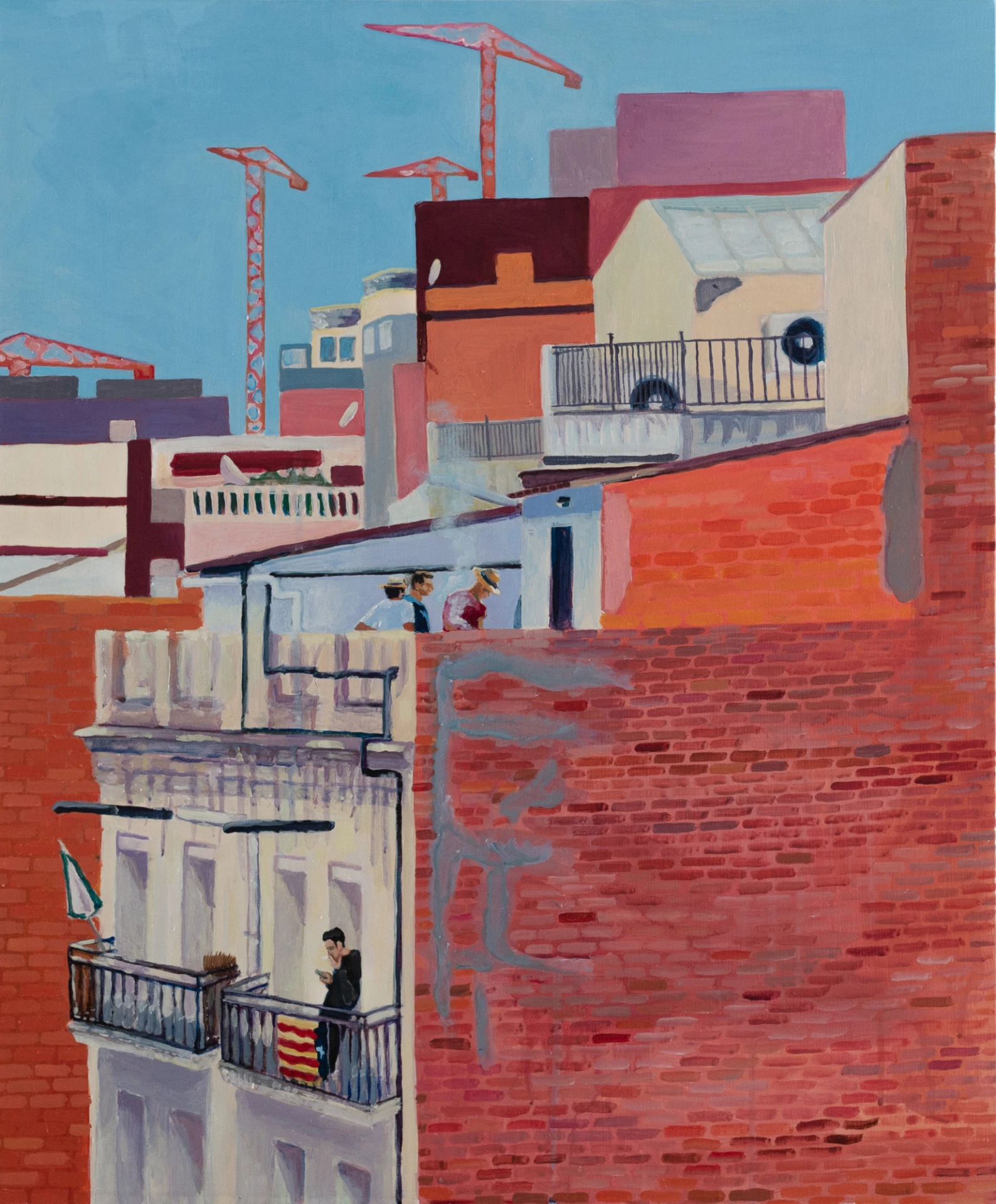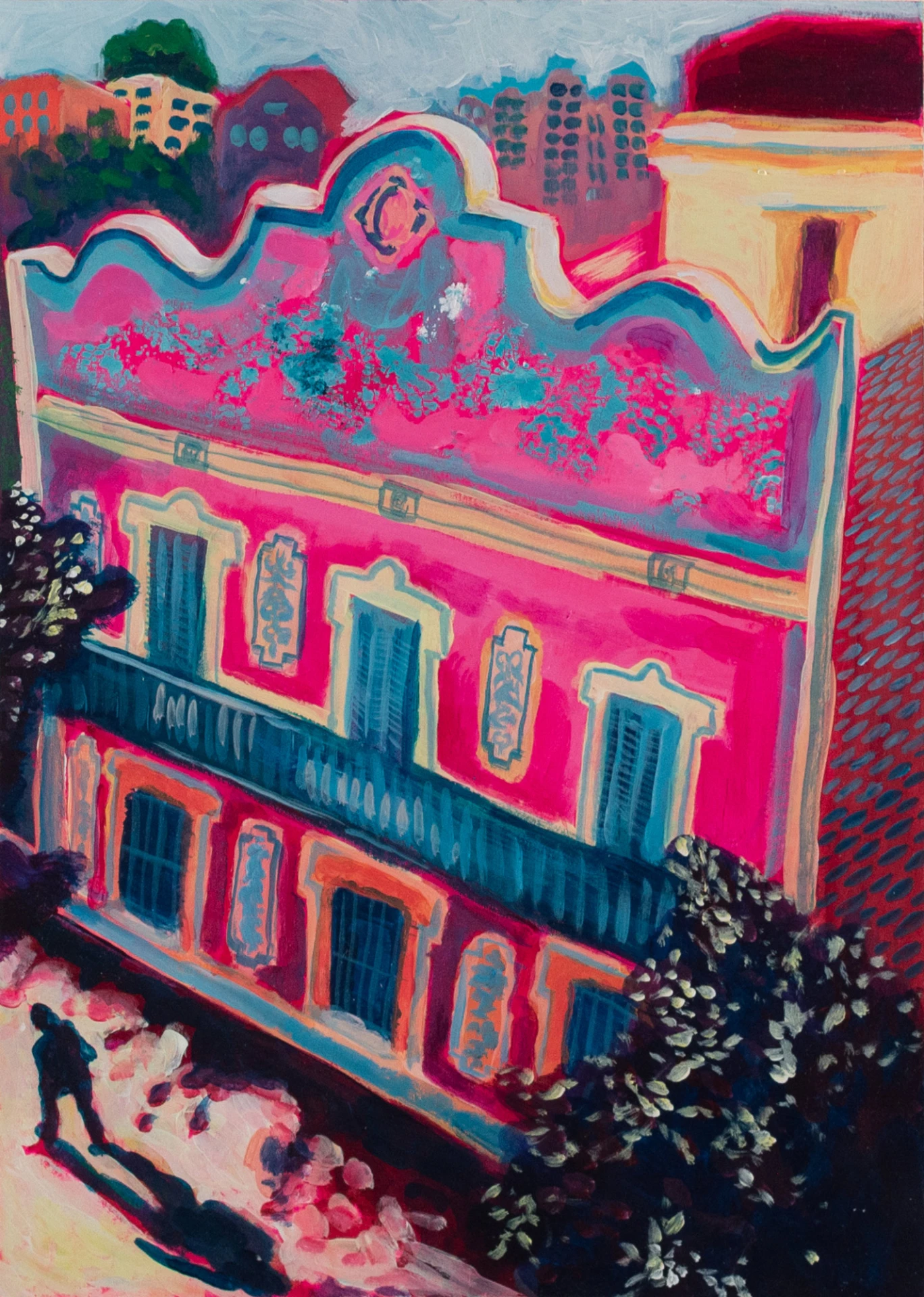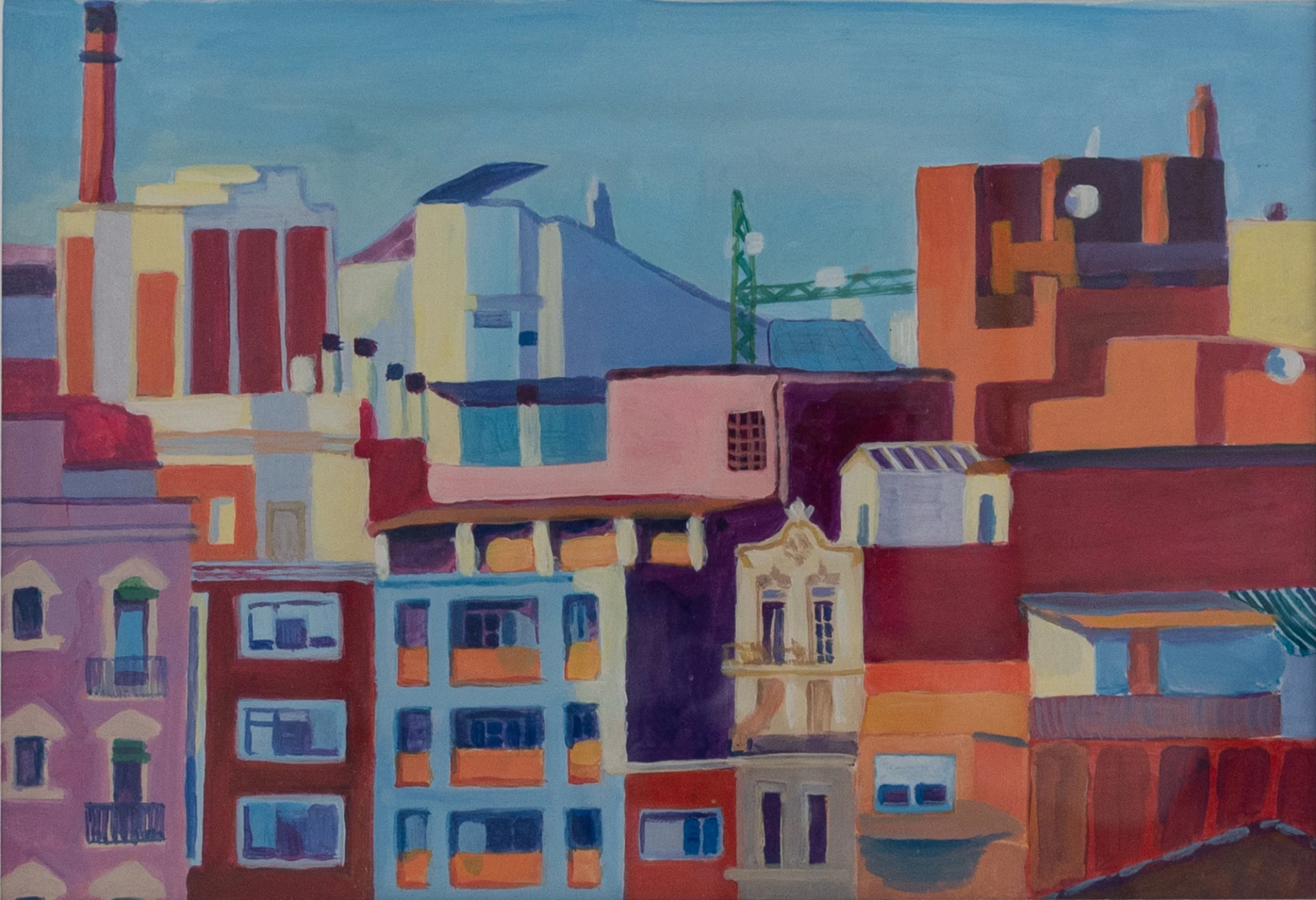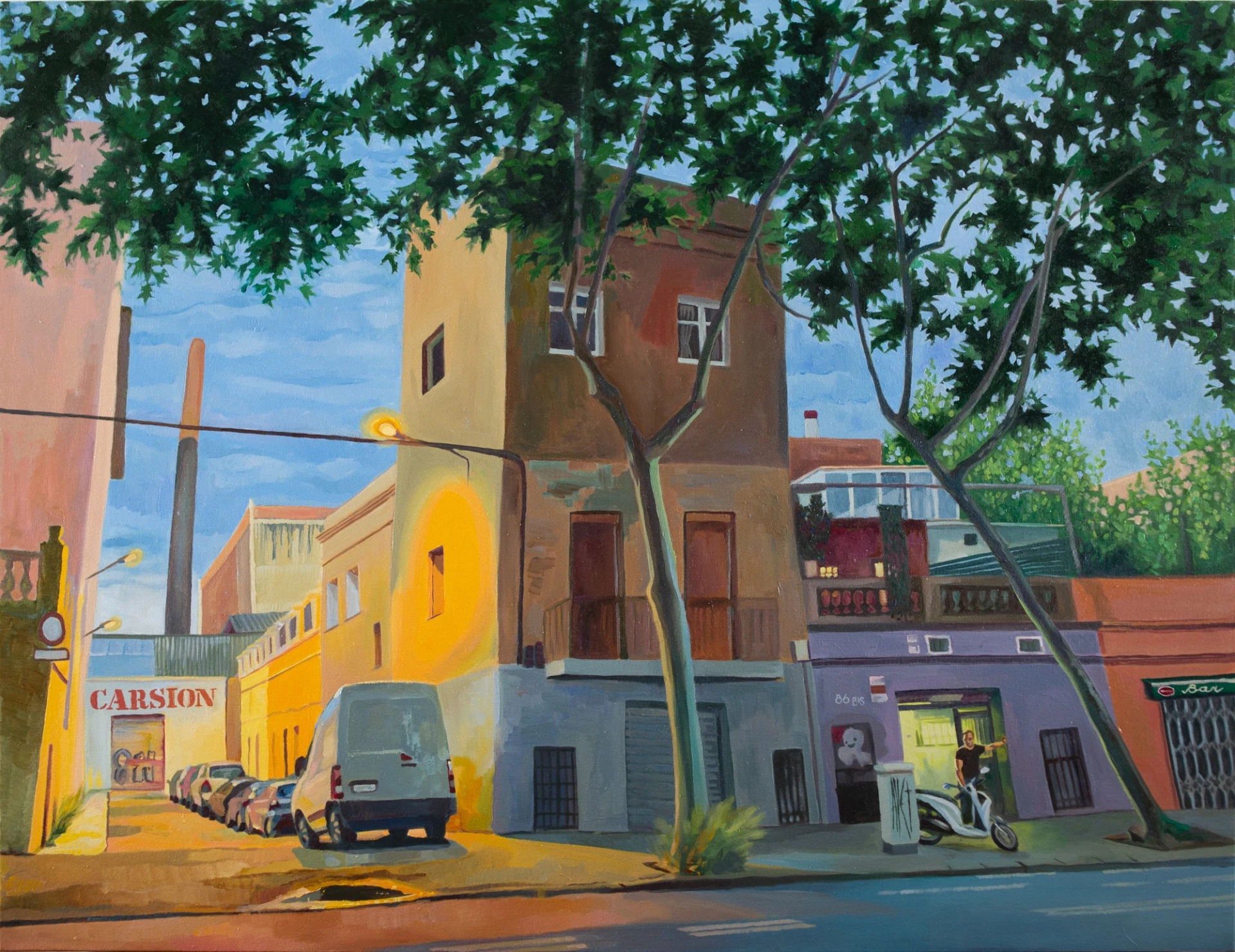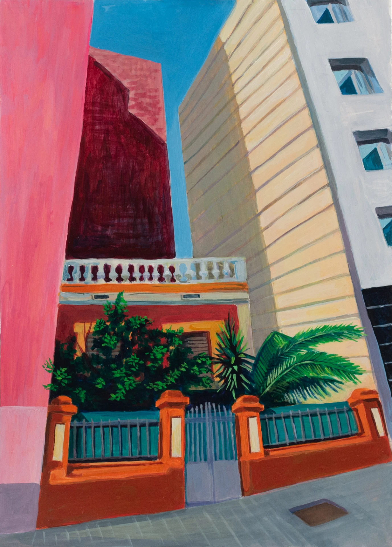 Living in a world completely dominated by the perfectly curated selfie, where reality is replaced by trends and information is obtained from social media, I feel compelled to dig deeper and expose the hidden and unseen from the world around me. Growing up in Vancouver in the 90s, watching it turn from a timid, Western Canadian big small town into a decadently rich city of glass towers, sports cars and luxury brands, contrasted by an ever growing poverty and drug problem, I moved to Barcelona only to realise that it too battles with a dual identity. The trending images of this city that bring over 30 million tourists every year have surely caught anyone's eye. However, it didn't take me long to discover that a much greater value of this place lies in the hidden, unseen sites that do not seem worthy of our current communication channels. I am interested in exploring these places, giving them the importance that they deserve and showing off their beauty. When I walk around I choose images to paint based both on the meaning of their content and the visual balance of colours and shapes.
