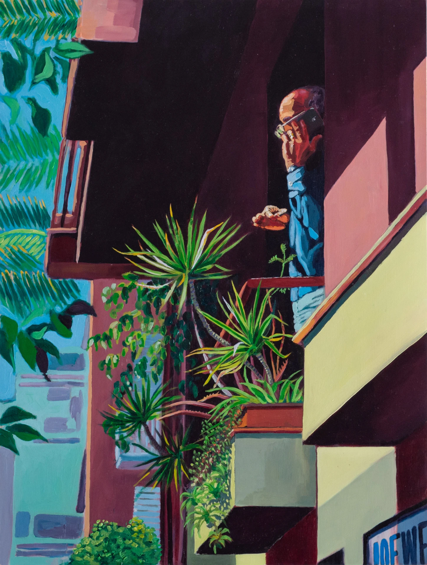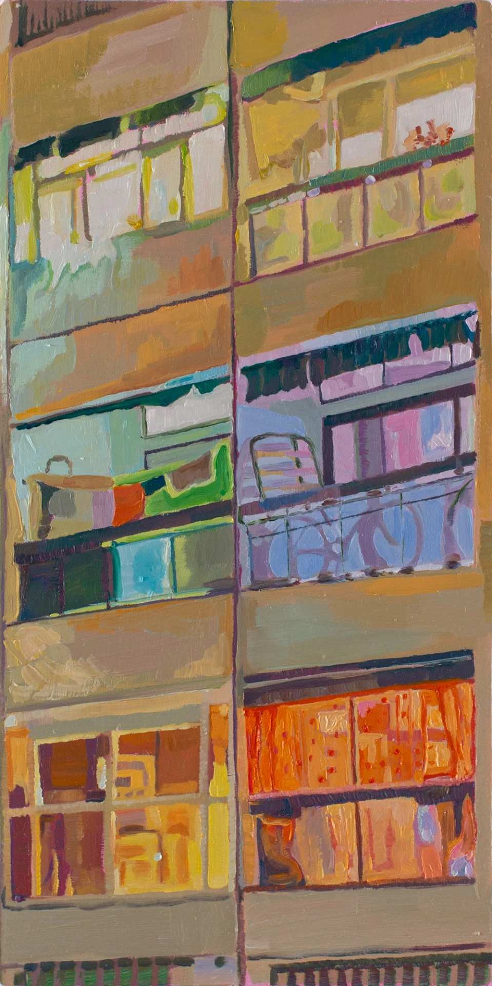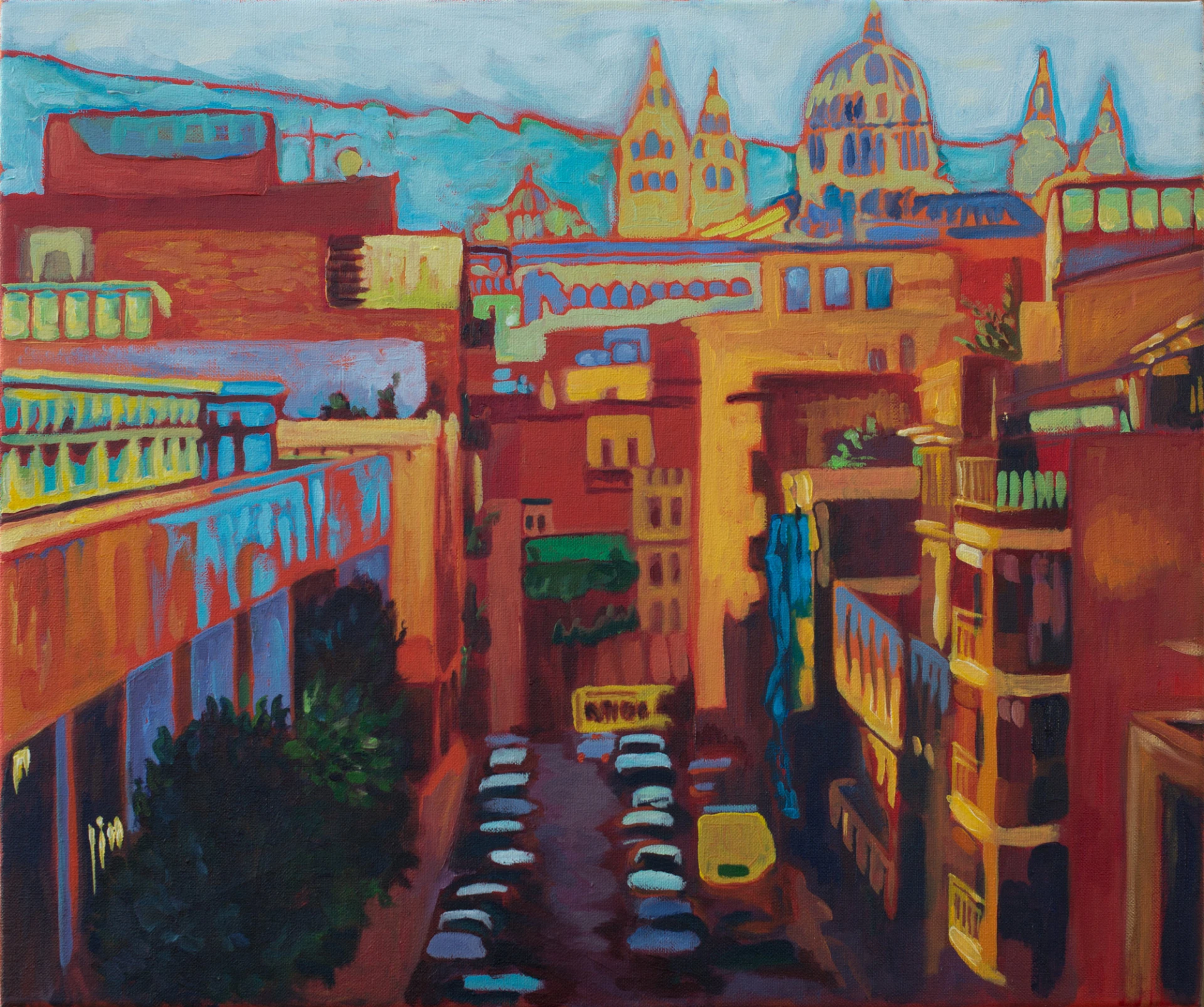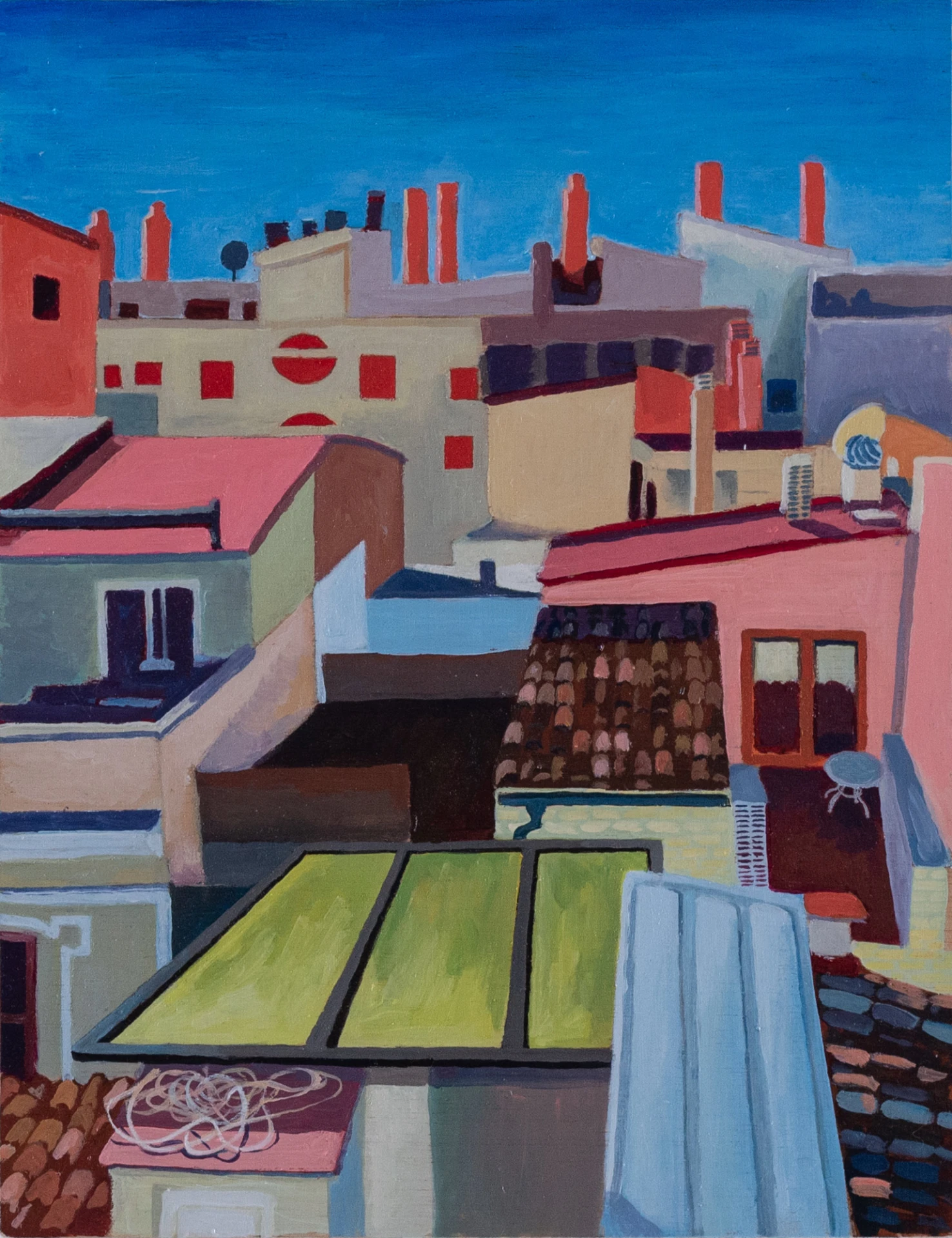 Living in a world completely dominated by the perfectly curated selfie, where reality is replaced by trends and information is obtained from social media, I feel compelled to dig deeper and expose the hidden and unseen from the world around me. Growing up in Vancouver in the 90s, watching it turn from a timid, Western Canadian big small town into a decadently rich city of glass towers, sports cars and luxury brands, contrasted by an ever growing poverty and drug problem, I moved to Barcelona only to realise that it too battles with a dual identity. The trending images of this city that bring over 30 million tourists every year have surely caught anyone's eye. However, it didn't take me long to discover that a much greater value of this place lies in the hidden, unseen sites that do not seem worthy of our current communication channels. I am interested in exploring these places, giving them the importance that they deserve and showing off their beauty. When I walk around I choose images to paint based both on the meaning of their content and the visual balance of colours and shapes.