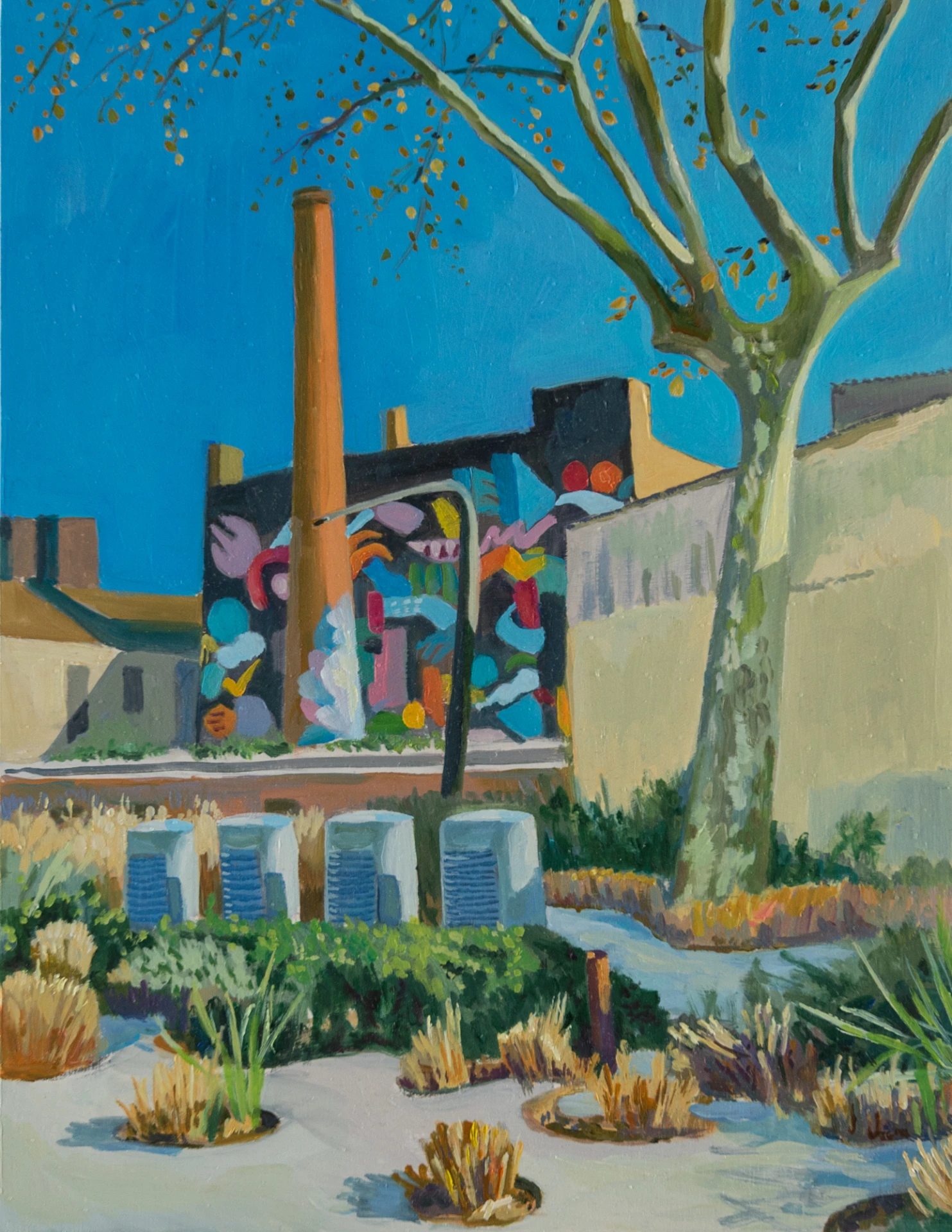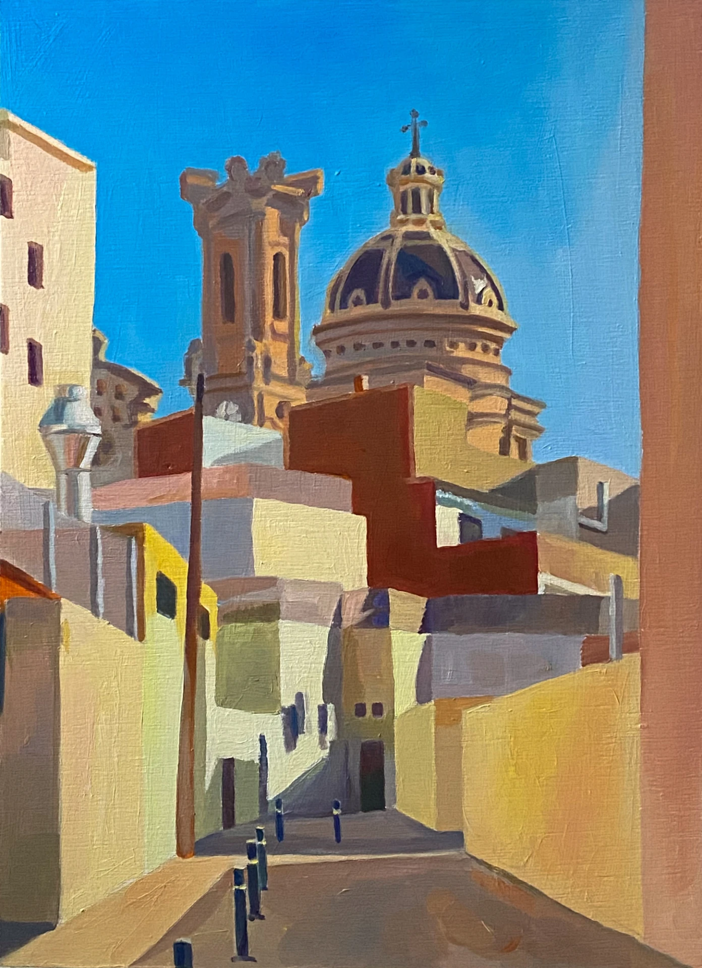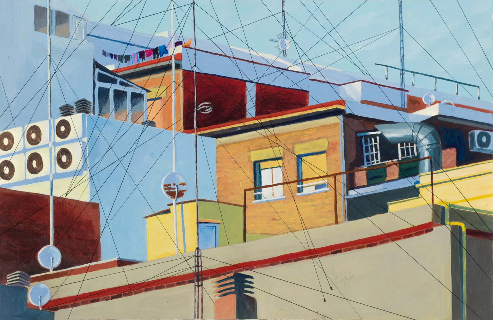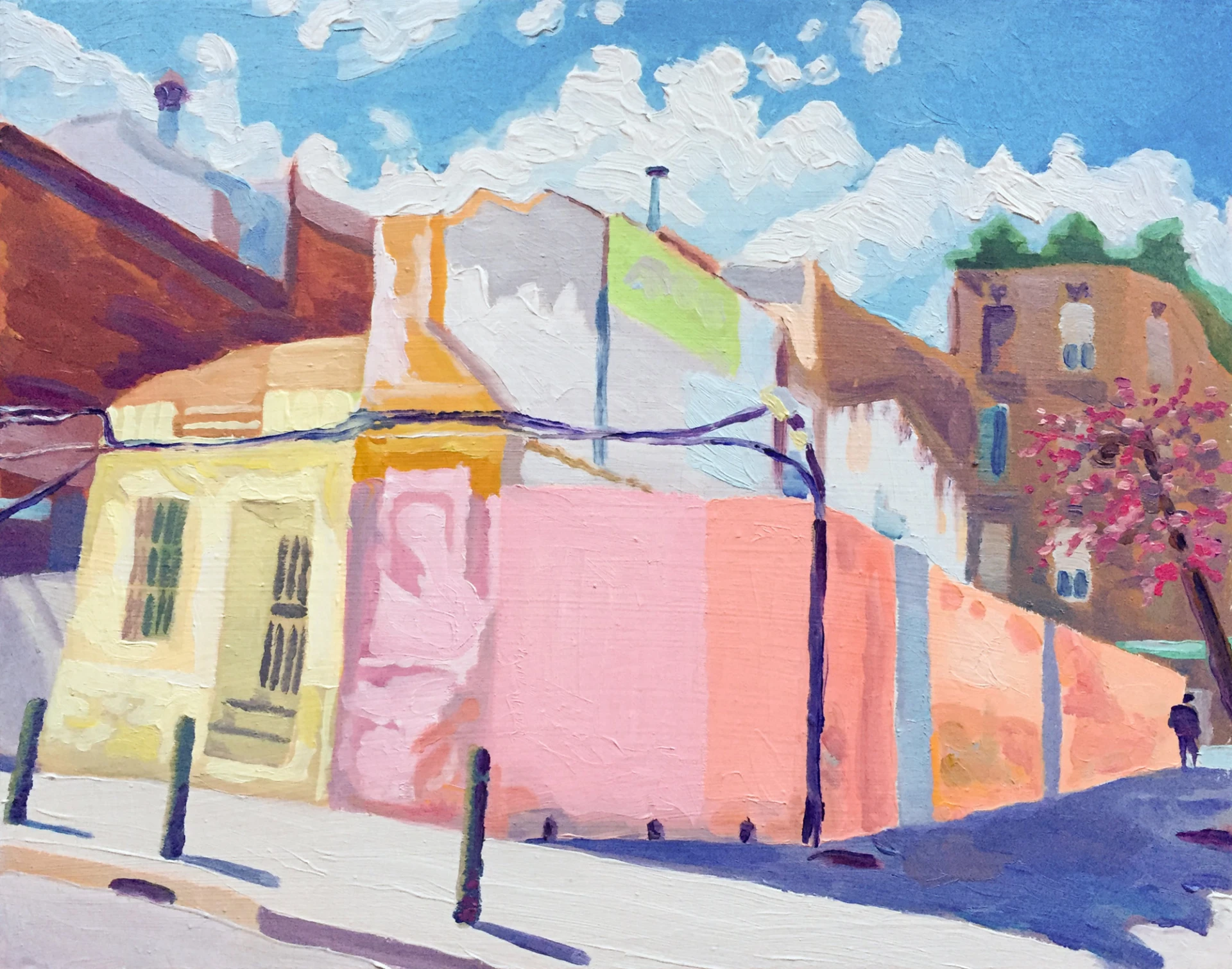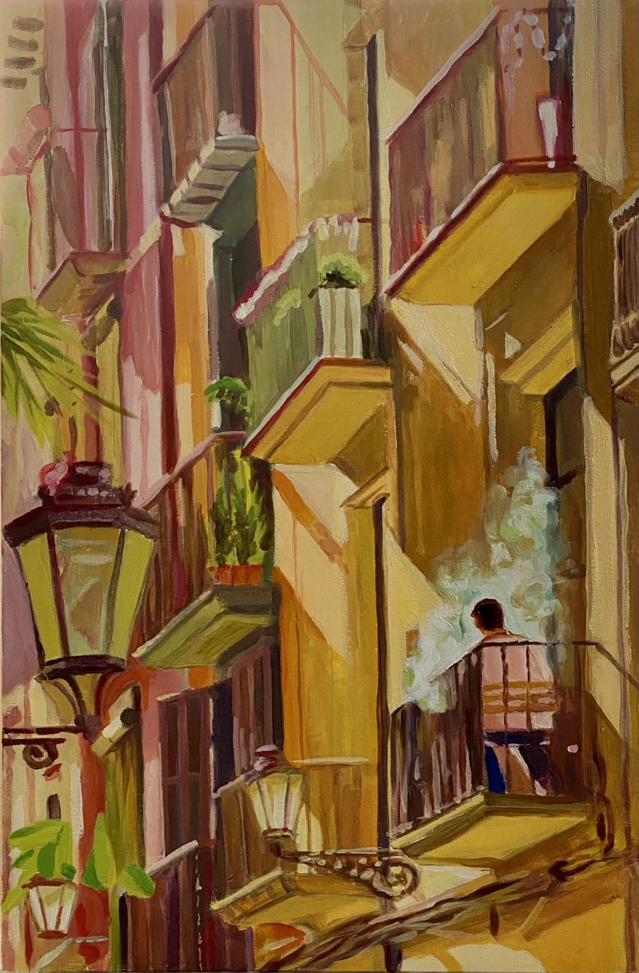 Living in a world completely dominated by the perfectly curated selfie, where reality is replaced by trends and information is obtained from social media, I feel compelled to dig deeper and expose the hidden and unseen from the world around me. Growing up in Vancouver in the 90s, watching it turn from a timid, Western Canadian big small town into a decadently rich city of glass towers, sports cars and luxury brands, contrasted by an ever growing poverty and drug problem, I moved to Barcelona only to realise that it too battles with a dual identity. The trending images of this city that bring over 30 million tourists every year have surely caught anyone's eye. However, it didn't take me long to discover that a much greater value of this place lies in the hidden, unseen sites that do not seem worthy of our current communication channels. I am interested in exploring these places, giving them the importance that they deserve and showing off their beauty. When I walk around I choose images to paint based both on the meaning of their content and the visual balance of colours and shapes.