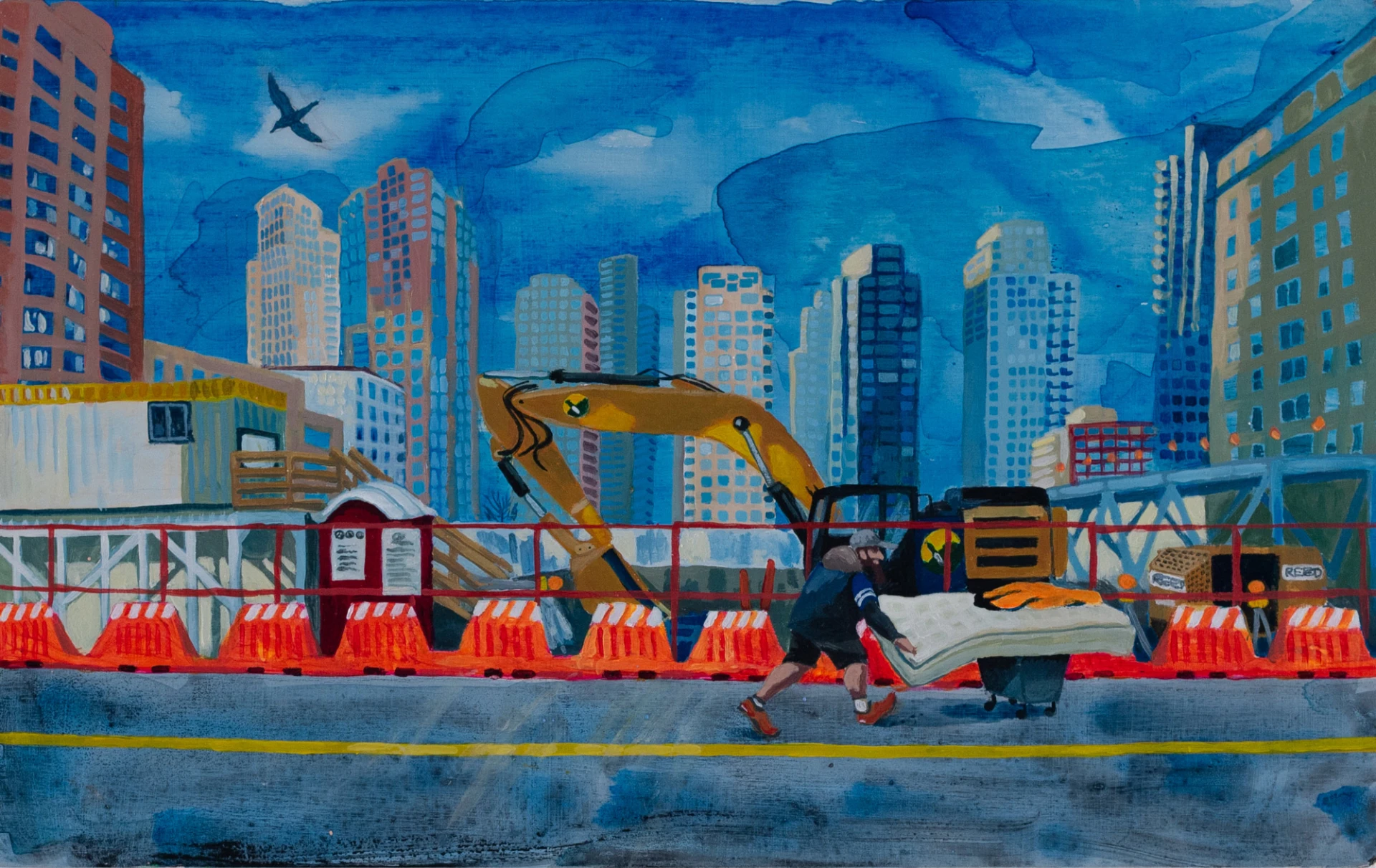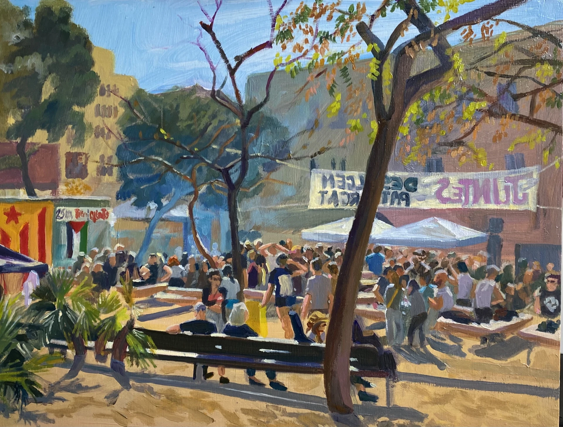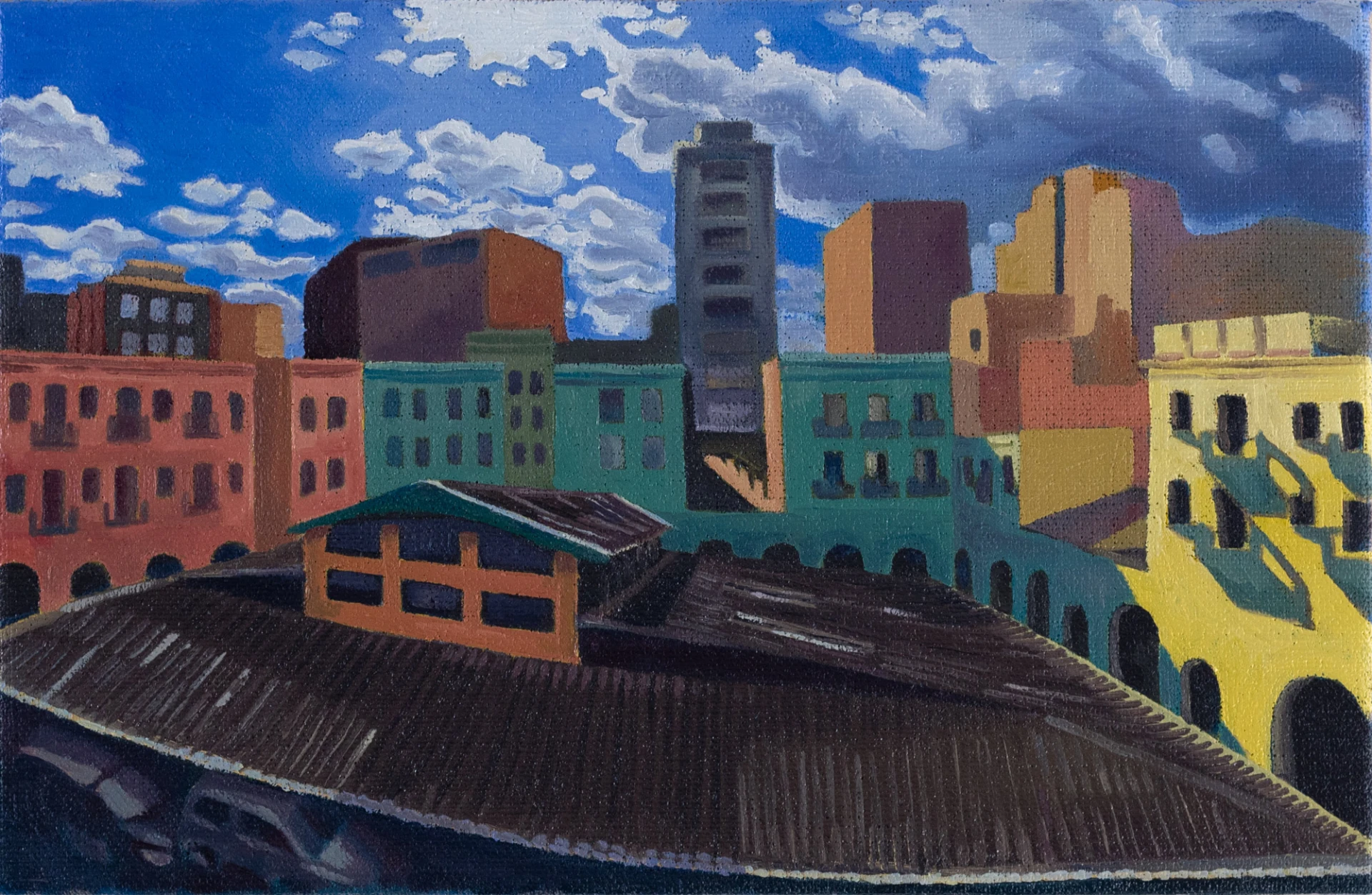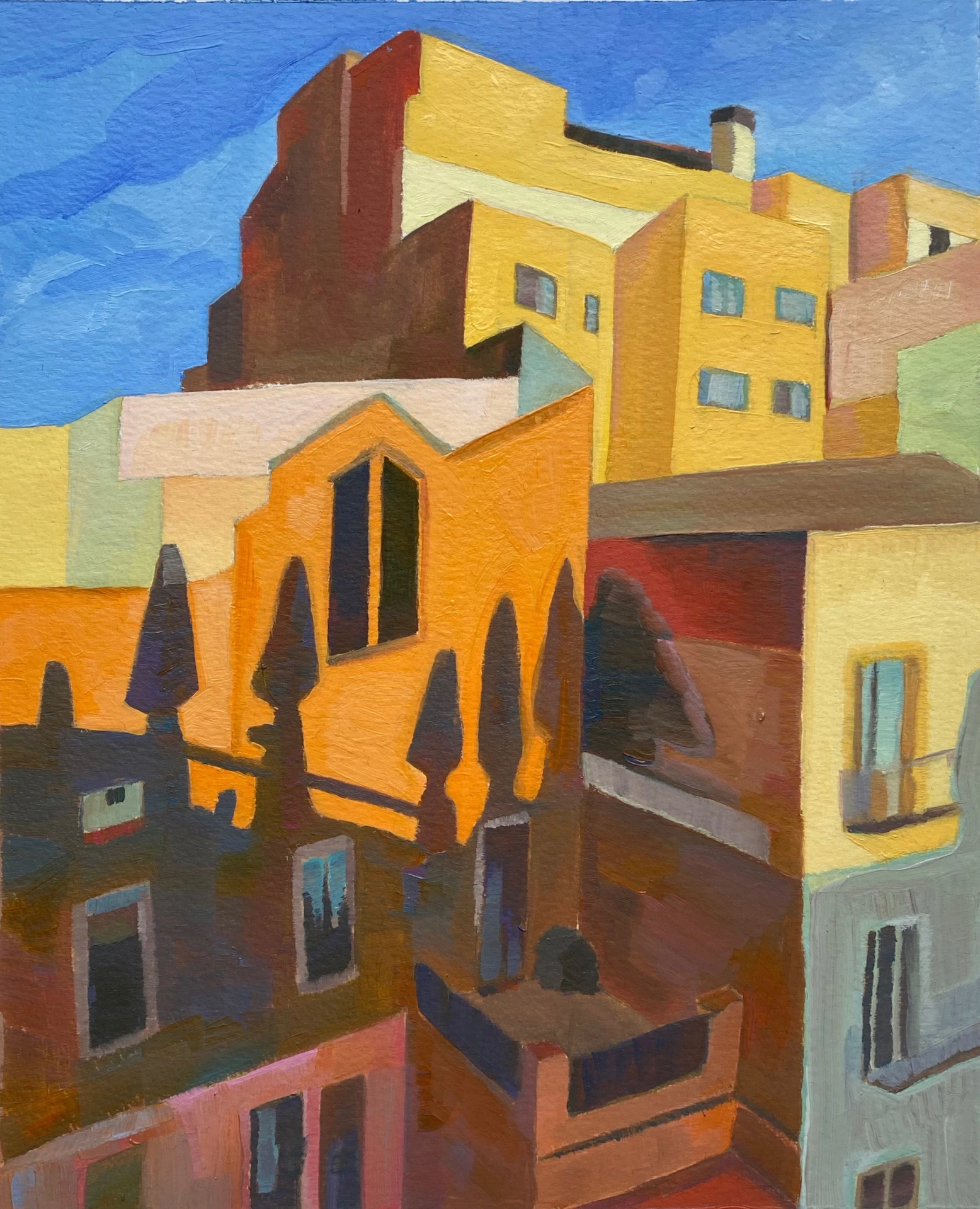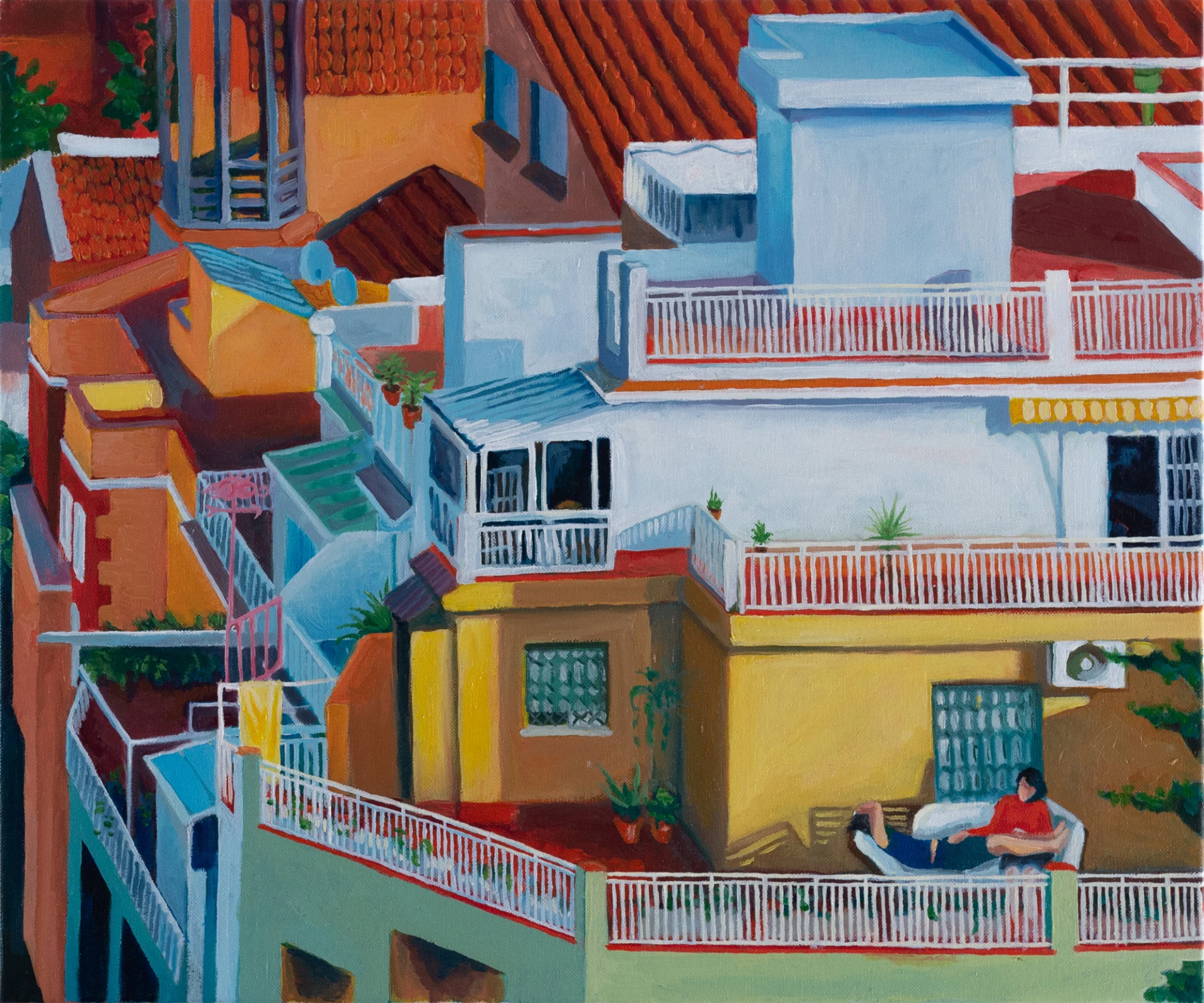 Living in a world completely dominated by the perfectly curated selfie, where reality is replaced by trends and information is obtained from social media, I feel compelled to dig deeper and expose the hidden and unseen from the world around me. Growing up in Vancouver in the 90s, watching it turn from a timid, Western Canadian big small town into a decadently rich city of glass towers, sports cars and luxury brands, contrasted by an ever growing poverty and drug problem, I moved to Barcelona only to realise that it too battles with a dual identity. The trending images of this city that bring over 30 million tourists every year have surely caught anyone's eye. However, it didn't take me long to discover that a much greater value of this place lies in the hidden, unseen sites that do not seem worthy of our current communication channels. I am interested in exploring these places, giving them the importance that they deserve and showing off their beauty. When I walk around I choose images to paint based both on the meaning of their content and the visual balance of colours and shapes.